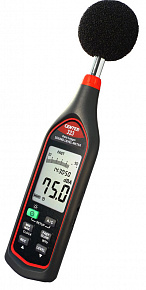 Шумомер с линейной шкалой и автовыбором пределов. 30…130 дБ (разрешение 0,1 дБ); полоса частот 20 Гц … 8 кГц ; динамический диапазон 60 дБ; погрешность ±1,4 дБ; фильтры А, С; 2 изм./ с; подсветка дисплея.