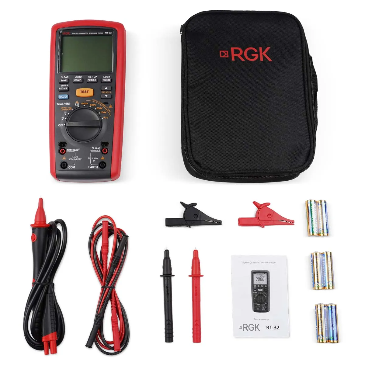 Цифровой мегаомметр RGK RT-32 используется для измерения сопротивления изоляции, оценки ее состояния и определения различных электротехнических параметров. Приборы такого типа востребованы при проведении диагностики и техобслуживания промышленного оборудования, электросетей, а также при работах, связанных с системами электрического обогрева полов в жилых или коммерческих объектах.