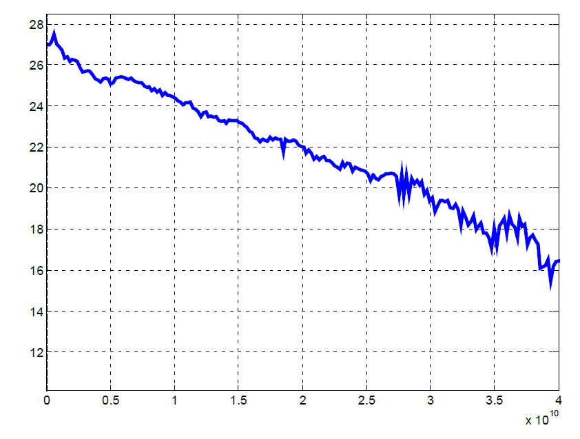 Рис.1 Уровень выходной мощности генератора RFSU40 до 40 ГГц, без опции аттенюатора